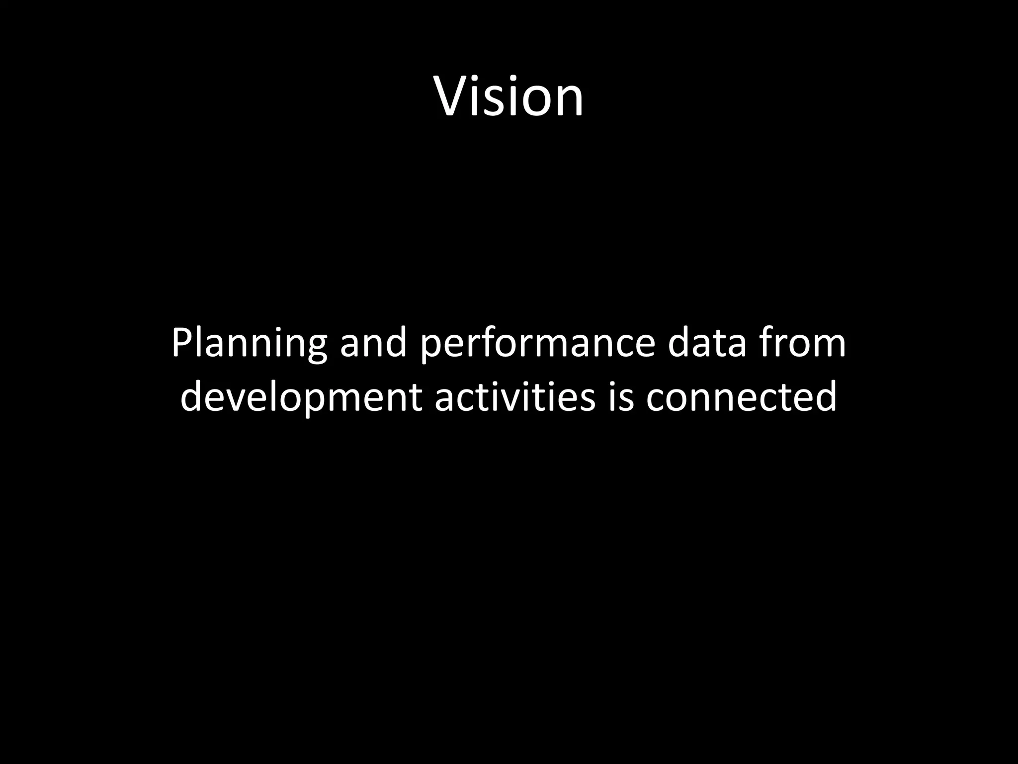 The document outlines a vision for improved development data management using self-aware data objects (SDOs) to enhance data standards, sharing, and evaluation processes. It addresses challenges like data quality and governance, proposing a new approach centered on operational data and strong data governance principles. The initiative aims to create a more efficient system for data integration and usage, supported by tools like a domain-specific language (DSL) and a data registry for managing shared definitions.