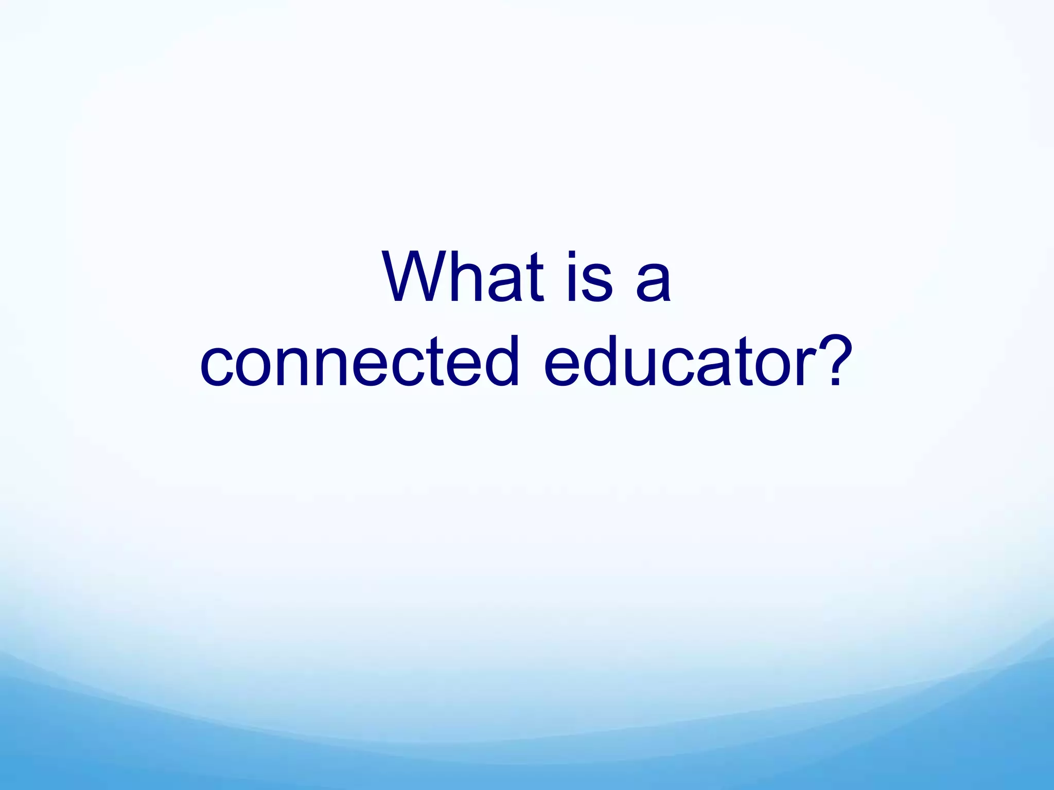 A connected educator develops networks and collaborates online with colleagues globally to engage in powerful learning practices. This shifts away from isolation towards a community of learners who have deep conversations about ideas and practice while listening to varied perspectives.