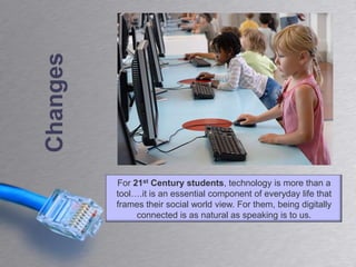 This document discusses the importance of digital citizenship for 21st century students. It notes that today's students have grown up in a digitally connected world and are comfortable with technology, but may lack understanding of online safety and responsibility. It argues that teaching digital citizenship is crucial to prepare students for life in a society full of technology. The document provides definitions of digital citizenship and outlines some available resources for teachers, students, and parents in Wolf Creek to help guide students on responsible technology use.