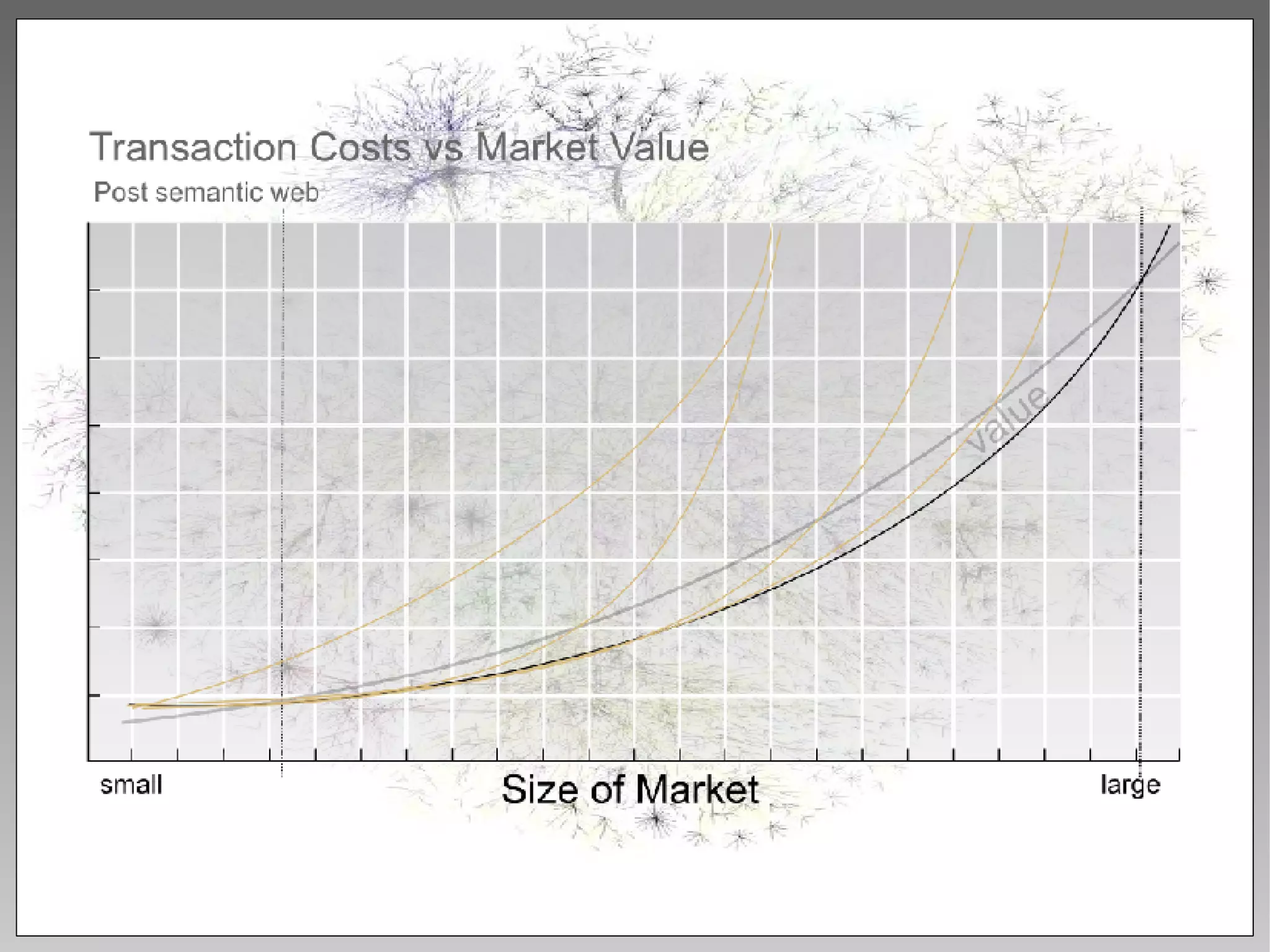 The document discusses how the semantic web, cloud computing, and social software are transforming modern business structures, allowing for smaller, more specialized companies that focus on creativity rather than heavy engineering. It highlights how reduced transaction costs and increased connectivity enable firms to thrive in larger markets. The implication is a shift towards loosely coupled, networked businesses that prioritize innovation and efficiency.