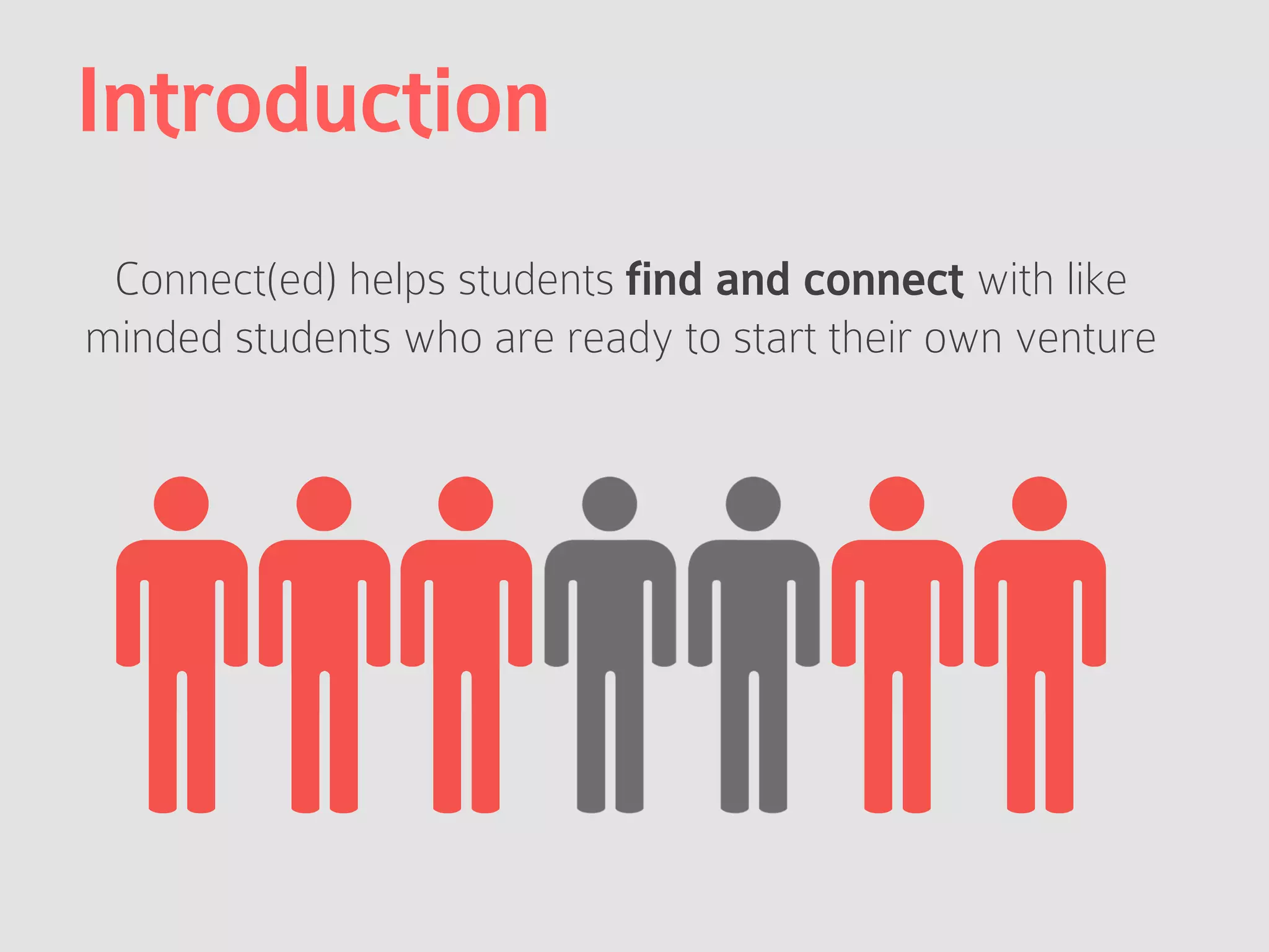 Connect(ed) is a web platform that aims to connect University of Alberta students with complementary backgrounds and skills to collaborate on projects and start businesses. It seeks to get more students excited about entrepreneurship and break down barriers between faculties. Students fill out a profile, are matched, and can then collaborate on sponsored projects, build ideas, and expand their networks. Initially, Connect(ed) will focus on building traction among students from different programs and later explore small business partnerships and expansion to other schools. The plan is to gather more student feedback to improve the platform and maintain engagement.