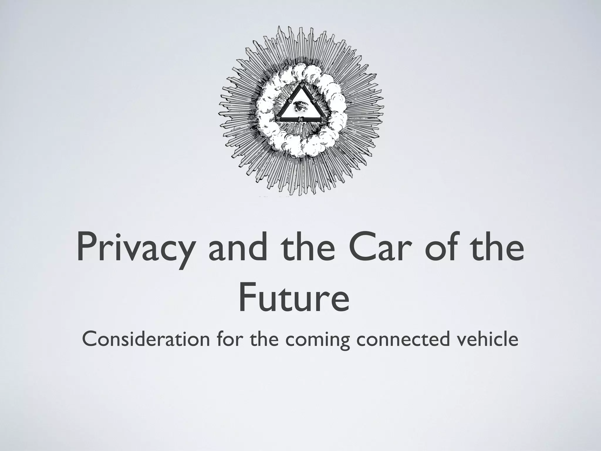 This document discusses privacy considerations for connected vehicles that communicate using dedicated short range communications (DSRC). DSRC allows vehicles to broadcast basic safety messages to nearby vehicles to improve road safety by warning of hazards. However, these messages and the vehicle certificates could potentially be tracked and used to identify vehicles, violating privacy. Solutions proposed to address privacy include changing vehicle identifiers frequently and revoking certificates if the onboard system is compromised, but these require a trusted authority to manage certificates and many opportunities remain for privacy to be breached.