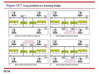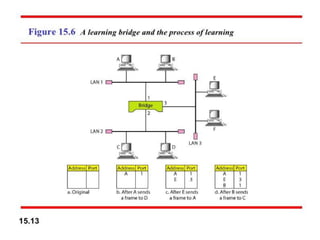 1. Those below the physical layer like a passive hub. 2. Those at the physical layer like a repeater or active hub. 3. Those at the physical and data link layers like a bridge or two-layer switch. 4. Those at the physical, data link, and network layers like a router or three-layer switch. 5. Those that can operate at all five layers like a gateway.