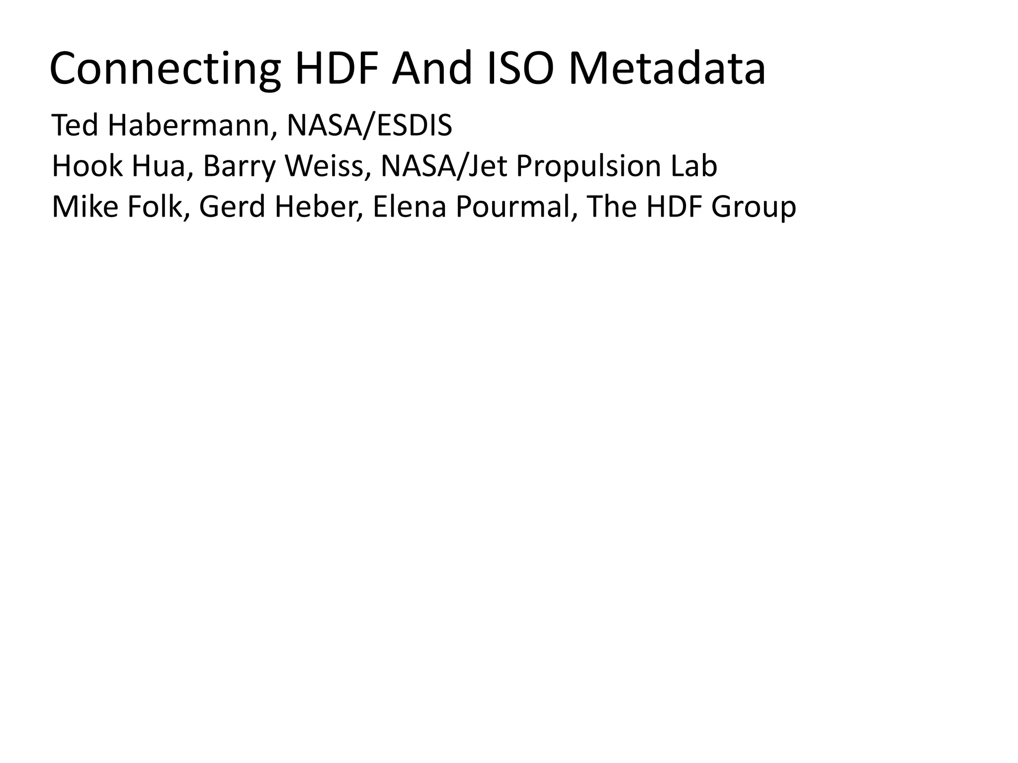 This document summarizes the process for connecting HDF and ISO metadata standards. It involves: