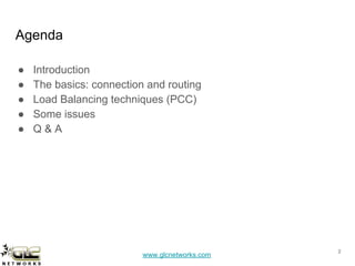 The document details a workshop on connection load balancing using MikroTik, led by Achmad Mardiansyah of GLC Networks in Indonesia. It covers fundamental concepts, various load balancing techniques, as well as challenges and recommendations related to networking and routing. The workshop also emphasizes the importance of understanding connection management and offers a perspective on the MikroTik Academy program.