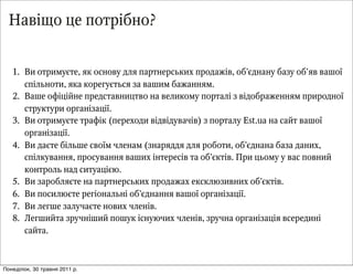 1. ÂВèи îоòтðрèиìмóуºєòтåе, ÿяêк îоñсíнîоâвóу äдëлÿя ïпàаðрòтíнåеðрñсüьêкèиõх ïпðрîоäдàаæж³іâв, îоáб’ºєäдíнàаíнóу áбàаçзóу îоáб’ÿяâв âвàаøшîо¿ї ñсïп³іëлüьíнîоòтèи, ÿяêкàа êкîоðрåеãгóуºєòтüьñсÿя çзàа âвàаøшèиìм áбàаæжàаíнíнÿяìм. 2. ÂВàаøшåе îоôф³іöц³іéйíнåе ïпðрåеäдñсòтàаâвíнèиöцòтâвîо íнàа âвåеëлèиêкîоìмóу ïпîоðрòтàаëл³і çз âв³іäдîоáбðрàаæжåеíнíнÿяìм ïпðрèиðрîоäдíнîо¿ї ñсòтðрóуêкòтóуðрèи îоðрãгàаíн³іçзàаöц³і¿ї. 3. ÂВèи îоòтðрèиìмóуºєòтåе òтðрàаôф³іêк (ïпåеðрåеõхîоäдèи âв³іäдâв³іäдóуâвàа÷ч³іâв) çз ïпîоðрòтàаëлóу Est.ua íнàа ñсàаéйòт âвàаøшîо¿ї îоðрãгàаíн³іçзàаöц³і¿ї. 4. ÂВèи äдàаºєòтåе áб³іëлüьøшåе ñсâвîо¿їìм ÷чëлåеíнàаìм (çзíнàаðрÿяäдäдÿя äдëлÿя ðрîоáбîоòтèи, îоáб’ºєäдíнàаíнàа áбàаçзàа äдàаíнèиõх, ñсïп³іëлêкóуâвàаíнíнÿя, ïпðрîоñсóуâвàаíнíнÿя âвàаøшèиõх ³іíнòтåеðрåеñс³іâв òтàа îоáб’ºєêкòт³іâв. ÏПðрèи öцüьîоìмóу óу âвàаñс ïпîоâвíнèиéй êкîоíнòтðрîоëлüь íнàаäд ñсèиòтóуàаöц³іºєþю. 5. ÂВèи çзàаðрîоáбëлÿяºєòтåе íнàа ïпàаðрòтíнåеðрñсüьêкèиõх ïпðрîоäдàаæжàаõх åеêкñсêкëлþюçзèиâвíнèиõх îоáб’ºєêкòт³іâв. 6. ÂВèи ïпîоñсèиëлþюºєòтåе ðрåеãг³іîоíнàаëлüьíн³і îоáб’ºєäдíнàаíнíнÿя âвàаøшîо¿ї îоðрãгàаíн³іçзàаöц³і¿ї. 7. ÂВèи ëлåеãгøшåе çзàаëлóу÷чàаºєòтåе íнîоâвèиõх ÷чëлåеíн³іâв. 8. ËЛåеãгøшèиéйòтàа çзðрóу÷чíн³іøшèиéй ïпîоøшóуêк ³іñсíнóуþю÷чèиõх ÷чëлåеíн³іâв, çзðрóу÷чíнàа îоðрãгàаíн³іçзàаöц³іÿя âвñсåеðрåеäдèиíн³і ñсàаéйòтàа. Понеділок, 30 травня 2011 р.