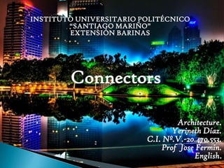This document is from the Instituto Universitario Politècnico "Santiago Mariño" in Barinas and contains information about the student Yerineth Díaz, including her major of Architecture, identification number, and English professor Jose Fermin.
