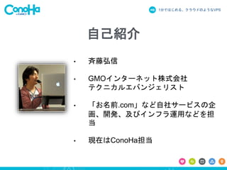 GMOインターネットにおけるOpenStack Swiftのサービス化とその利用事例 講師:斉藤 弘信、郷古 直仁(GMO インターネット株式会社 事業本部) 2014年にGMOアプリクラウド、ConoHaでOpenStack SwiftのPublicサービスを開始しました。本セッションでは、そのシステム構成や運用上の工夫ポイント、Swiftミドルウェアの動作の説明とGMOグループ商材での利用事例などをご紹介いたします。