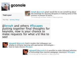 The document discusses emerging technologies and their potential impact on learning. It examines how technologies are changing learners and contexts for education. A typology of technologies is presented along with case studies of different pedagogical approaches (e.g. inquiry-based, situated, and connectivist learning). Challenges in realizing technology's potential for transforming learning are explored, with solutions focusing on learning design, open educational resources and pedagogical planning frameworks. While predicting the future is difficult, an ongoing co-evolution of tools and practices will shape new digital literacies and learning landscapes.
