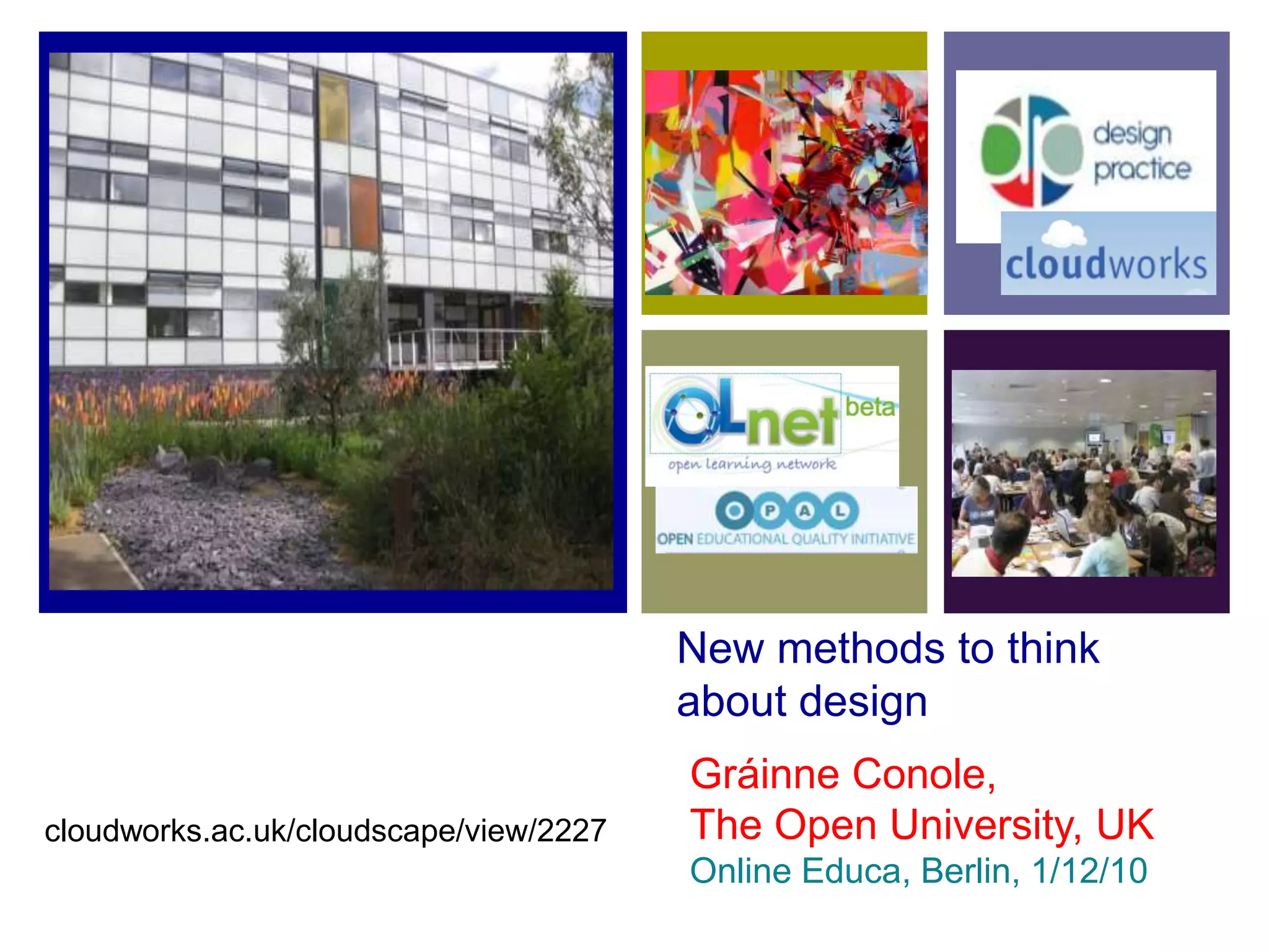 This document discusses new approaches to learning design and visualization. It emphasizes shifting from implicit to explicit and design-based approaches. Various tools are presented for visualizing course design, including course maps, pedagogy profiles, learning activities diagrams, and learning outcome maps. These tools make the design explicit, enable sharing of designs, and encourage reflective practice. Workshops and Cloudworks are presented as ways to collaborate and discuss designs.
