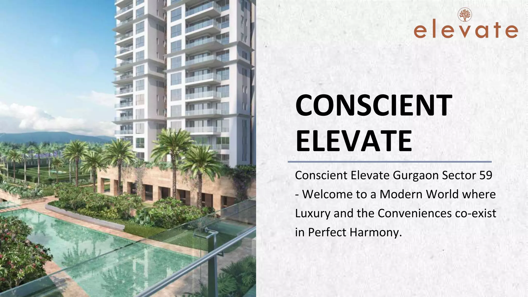 Conscient Hines Elevate is a luxurious residential project located in Sector 59, Gurgaon, offering 3 and 4 BHK apartments with sizes ranging from 2095 to 3395 sq.ft. Designed by architect Ricardo Bofill, the development features a unique vehicular-free design, lush landscaping, and extensive amenities including a gym, swimming pool, and clubhouse. The project boasts direct connectivity to key areas and is built by renowned developers Conscient and Hines, emphasizing a lifestyle of modern luxury and comfort.