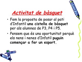 d’Infantil una cistella de bàsquet