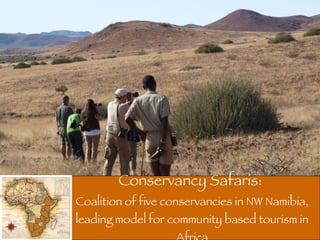 ![Other important information: Online: www.kcs-namibia.com.na Reservations: Angela Howells Tel: +264 64 40 6136 Fax: +264 64 40 6135 E-mail: [email_address] PO Box 8255, Swakopmund, Namibia](https://image.slidesharecdn.com/conservancysafarisshortsalespresentation-100212121541-phpapp01/85/Conservancy-Safaris-Presentation-11-320.jpg)
