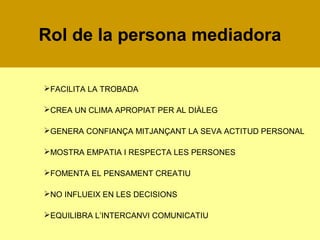 UNA TROBADA EN QUÈ LA PERSONA MEDIADORA ACTUA PER A