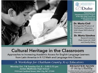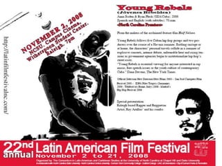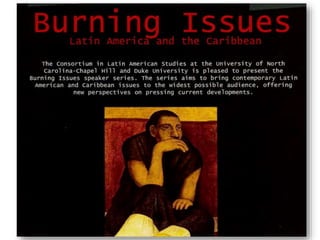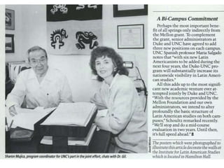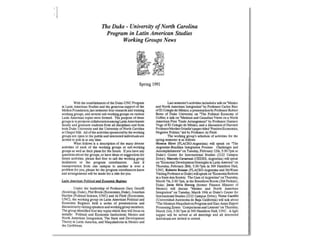 The document provides a comprehensive history of the Duke-UNC Program in Latin American Studies, detailing its origins, key events, grants, and programs from its establishment in the late 1980s through its various conferences and activities up to 2014. It highlights collaborative efforts, academic contributions, and community involvement, including film festivals, interdisciplinary working groups, and outreach programs. Significant milestones include grant awards, newsletters, art exhibits, and initiatives focusing on health, environment, and cultural exchanges related to Latin America.
