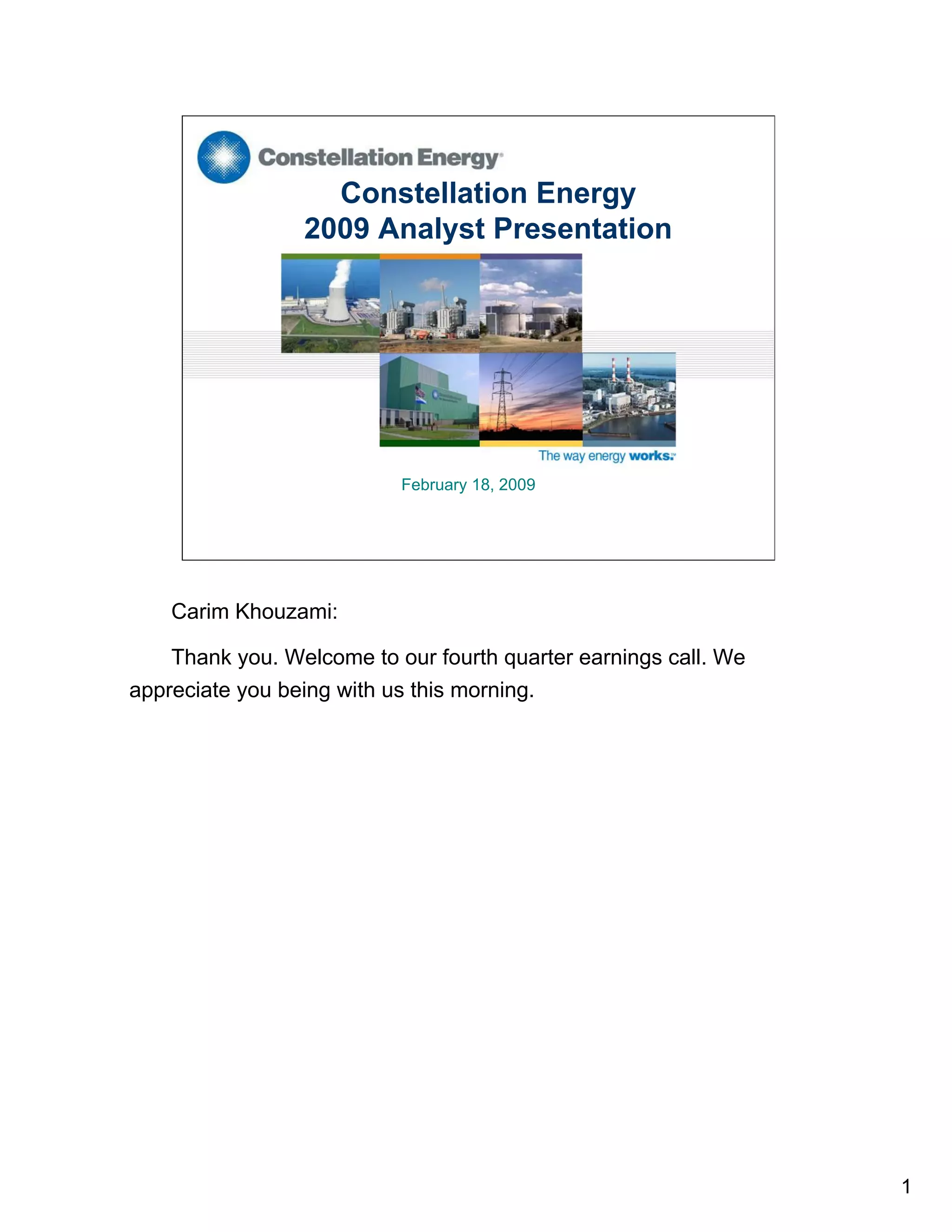 constellation energy 2008 Fourth Quarter Supporting Materials