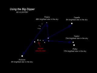 The document discusses constellations, which are patterns of stars recognized by various ancient cultures and formally defined by the IAU. Constellations were used for navigation, tracking seasons, and preserving myths. The IAU recognizes 88 constellations that fall within designated boundaries and include a variety of figures from mythology and science. Smaller unofficial patterns within constellations are called asterisms. Six constellations in the northern sky are always visible from a latitude of 28 degrees north.