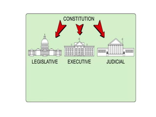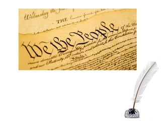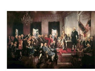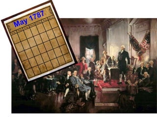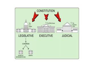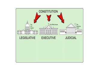 The document discusses the creation and significance of the U.S. Constitution, signed on September 17, 1787, by American leaders who sought to establish a government that protects the people and avoids monarchy. It outlines the division of government power into three branches: executive, legislative, and judicial, ensuring that each branch can check the power of the others. Notably, James Madison played a crucial role in drafting the Constitution and documenting the discussions during the Constitutional Convention in Philadelphia.