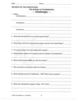 Constitution Worksheets