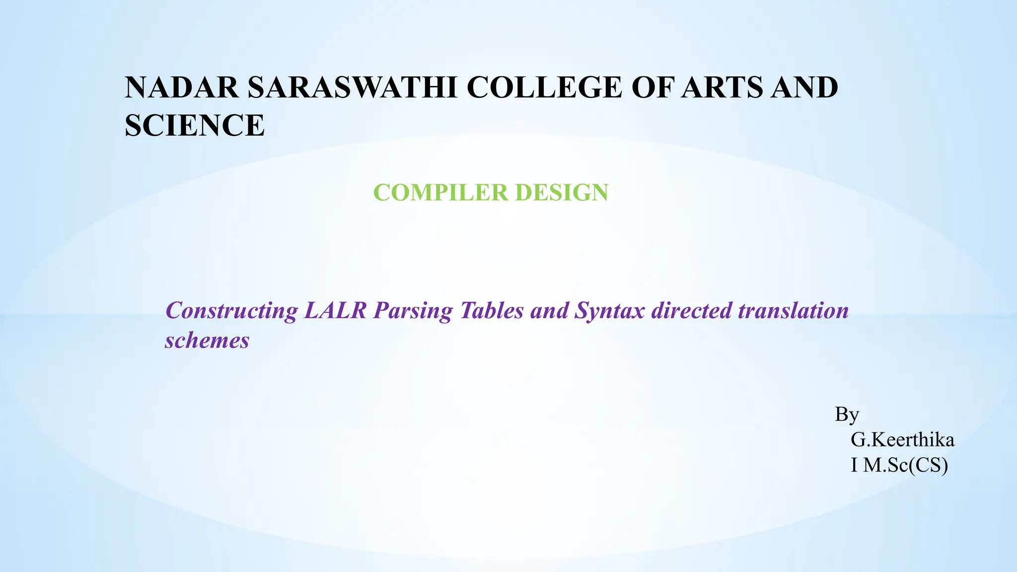 This document introduces LALR parsing, a method for parsing context-free grammars that utilizes a single lookahead symbol for efficient parsing, along with the construction of LALR parsing tables. It covers essential concepts such as context-free grammars, parsing techniques, and syntax-directed translation schemes, detailing their applications in compilers and code generation. Additionally, it discusses the advantages and limitations of LALR parsing and syntax-directed translations, highlighting their importance in programming language processing.