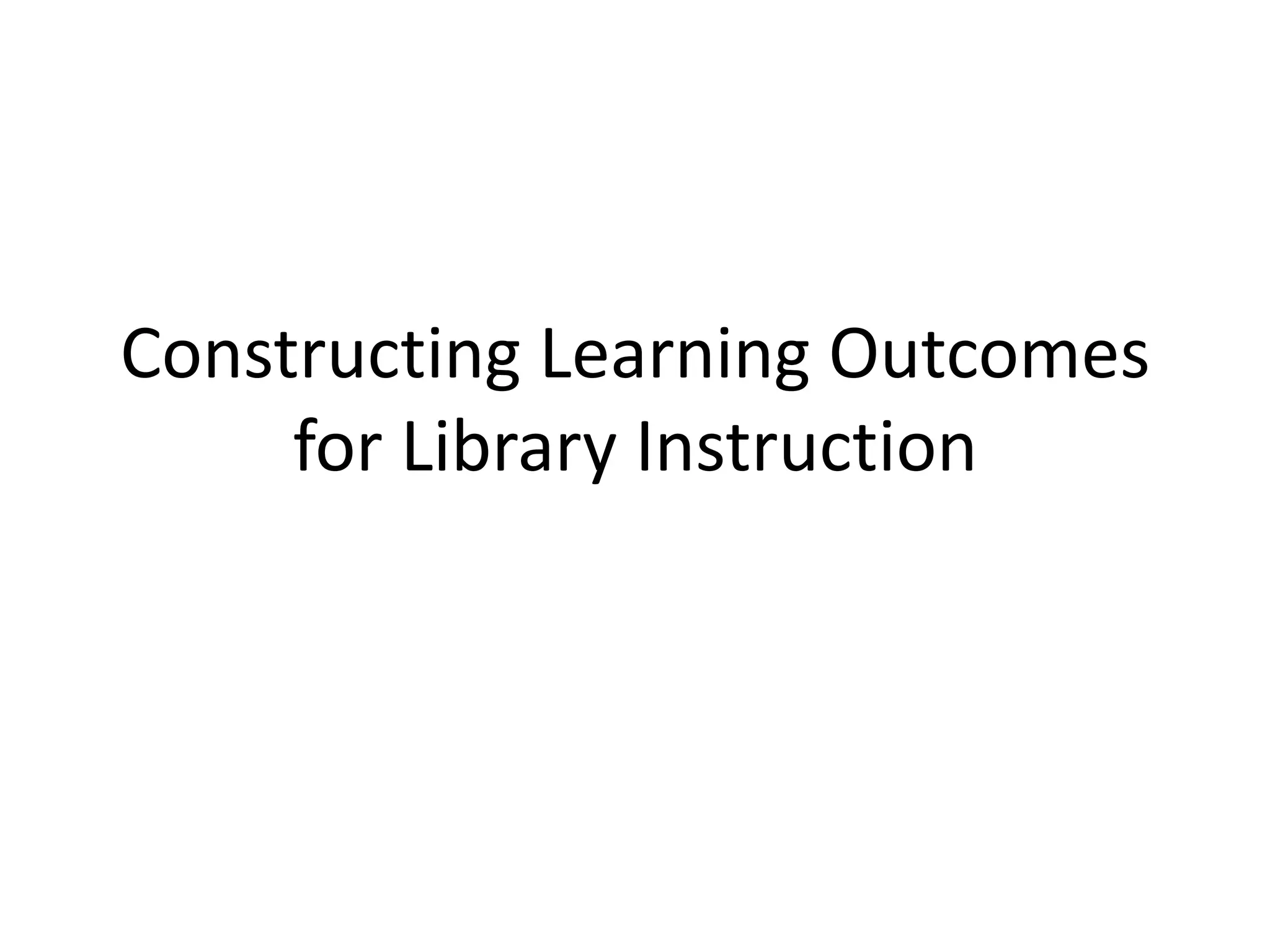 The document discusses learning outcomes and objectives for library instruction. It defines a learning outcome as what the student should be able to do at the end of instruction, while a learning objective is what the instructor intends to teach. An example is given where the objective is to teach sources, but the outcome is for students to find and distinguish sources. Learning outcomes should guide curriculum and assessment. Assessment helps clarify abstract outcomes and facilitates student learning. Bloom's Taxonomy is mentioned as categorizing educational objectives into cognitive, affective, and psychomotor domains, with the cognitive domain further broken down into knowledge, comprehension, application, analysis, synthesis, and evaluation. Sources for further reading are provided.