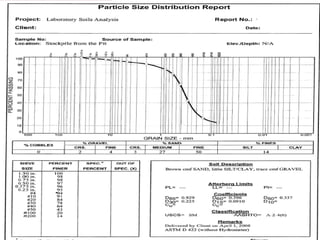 This document provides an overview of materials testing services for soil, aggregate, concrete, and masonry. It describes common laboratory and field tests for evaluating the properties and quality of construction materials, including tests for soil particle size and compaction, concrete slump and strength, and masonry compressive strength. The document emphasizes that materials testing should be performed by properly trained personnel according to standardized test methods and that test results should be reported in a timely manner.