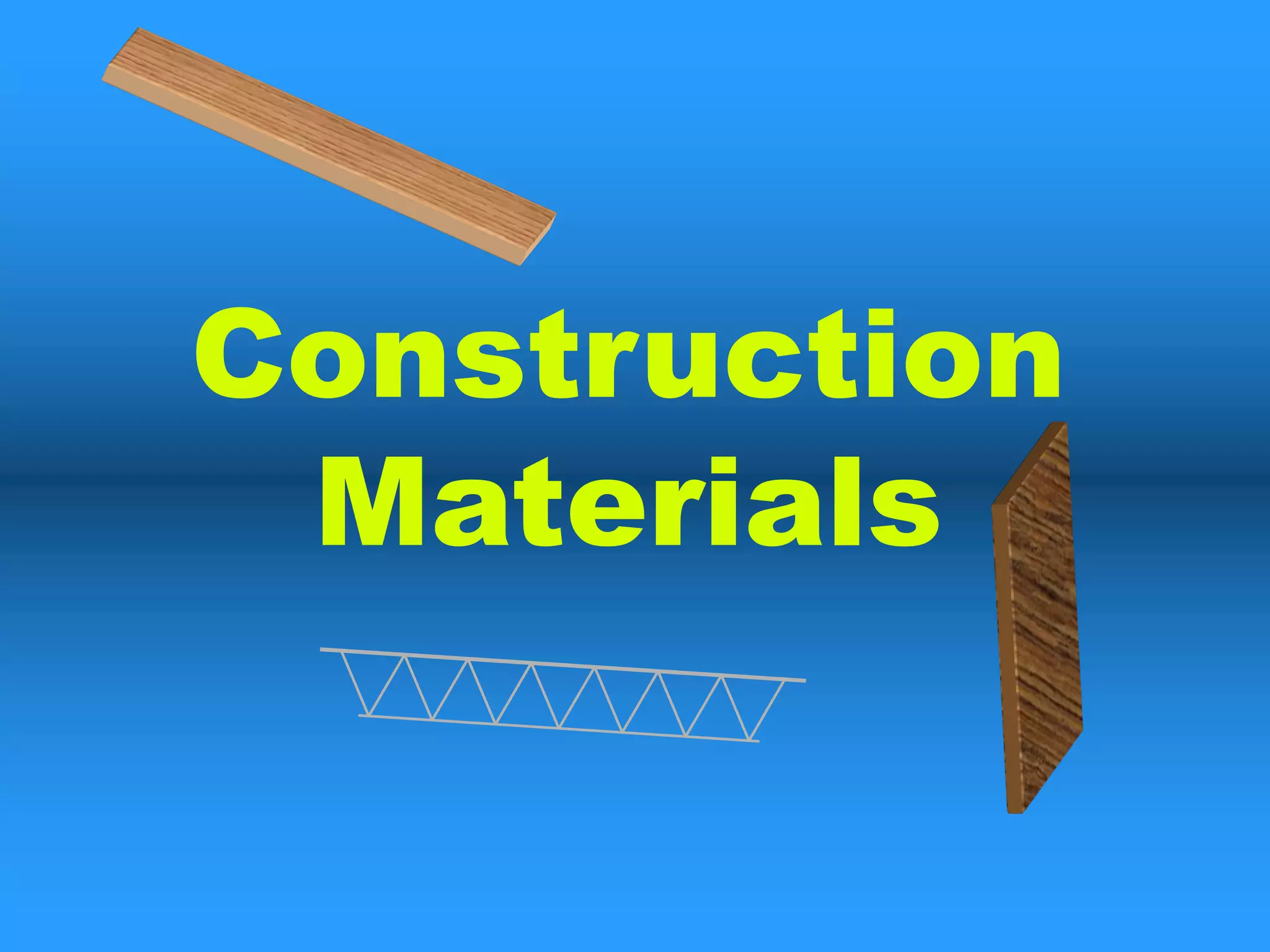 The document discusses various construction materials including concrete, reinforced concrete, stone and brick masonry, wood, plywood, steel, glass, ceramics, and plastics. Concrete starts as a moldable mixture that hardens through a chemical reaction. Reinforced concrete uses steel to improve its tensile strength. Different types of glass include laminated, wired, and insulated varieties.