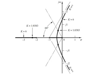 The document outlines the steps for constructing root loci in control systems, detailing methods to locate poles and zeros in the s-plane, determine asymptotes, breakaway and break-in points, and identify points crossing the imaginary axis. It provides examples of calculating the required parameters for unity feedback systems and illustrates various techniques such as the Routh stability criterion. Additionally, it includes several homework problems to reinforce the concepts discussed.