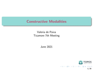 The document discusses constructive modalities and their significance in modal logic, highlighting the complexities and various modal logics such as intuitionistic and classical modal logic. It addresses the interactions between different modalities, their applications in computing and reasoning, and the ongoing challenges in developing effective proof theories and frameworks. Additionally, the author reflects on the historical expectations and current state of research in the area, emphasizing the need for collaboration among programmers, logicians, and philosophers.