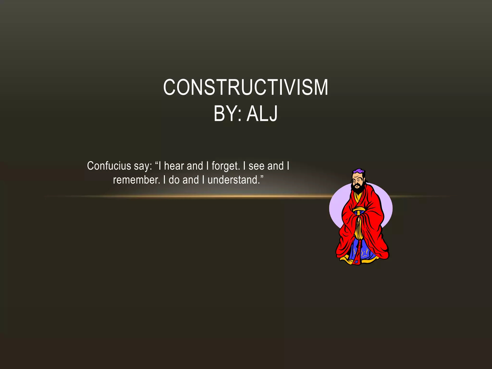 The document discusses constructivism and key theorists in constructivism such as Piaget, Bruner, Vygotsky, and Dewey. It outlines their beliefs and theories, including Piaget's stages of cognitive development, Bruner's emphasis on active and discovery learning, Vygotsky's social cognition theory involving the zone of proximal development, and Dewey's advocacy for child-centered learning. The implications for the classroom are that students learn by doing and constructing their own understanding while teachers provide rich learning environments and guidance to support discovery and scaffolding.
