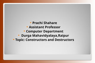 Topic: Constructors and Destructors