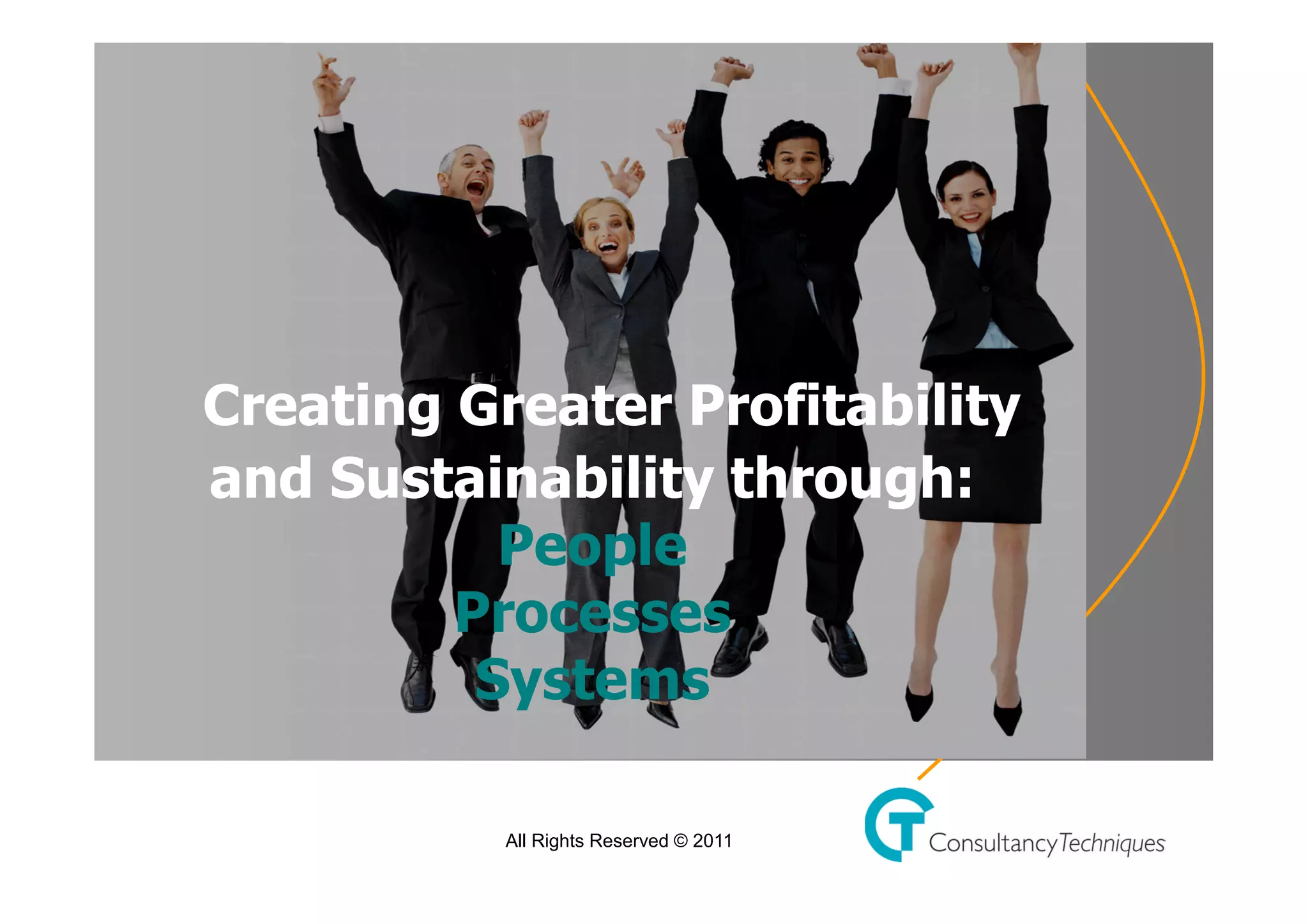 This consultancy firm provides organizational development and business improvement services. They help clients identify issues through interviews, employee focus groups, and process mapping. Their business review process includes a "health check" to identify key issues, opportunities, leadership effectiveness, and resource requirements to develop solutions and action plans. Their goal is to create sustainable value and long-term partnerships by working with people to solve issues and drive results.
