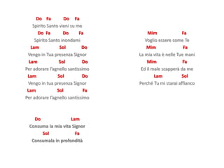 Il documento è un testo musicale che invoca lo Spirito Santo e esprime un desiderio di adorazione e trasformazione personale. L'autore chiede la presenza divina per essere consumato e diventare simile a Dio. Viene enfatizzato un forte legame tra la vita dell'autore e la fede.
