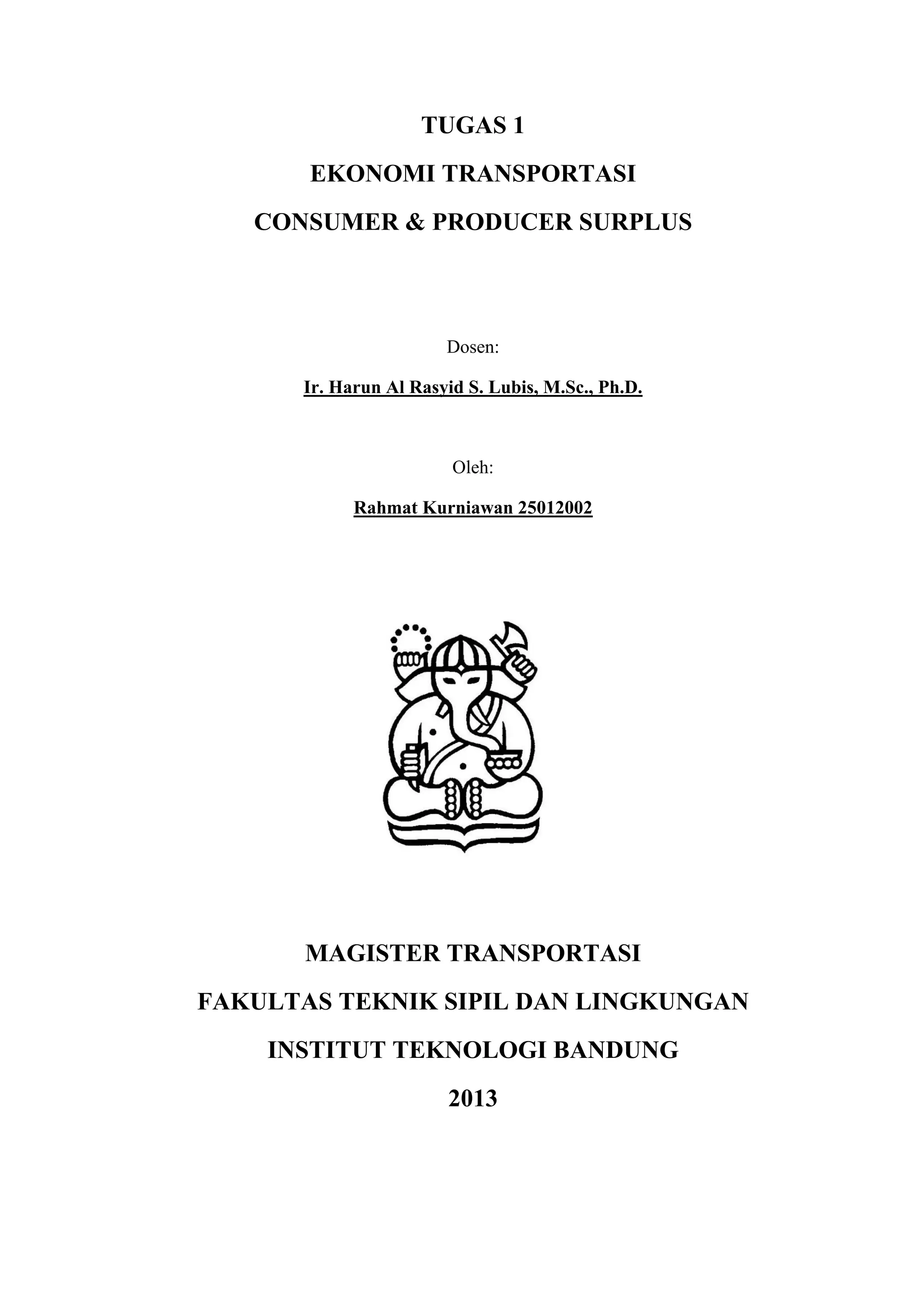 Dokumen ini membahas tentang surplus konsumen dan produsen dalam konteks ekonomi transportasi, termasuk definisi, perhitungan, dan pengaruh harga pasar terhadap kedua surplus tersebut. Terdapat ilustrasi yang menunjukkan bagaimana perubahan permintaan mempengaruhi surplus, serta penghitungan total benefit dan kerugian akibat efisiensi pasar yang buruk. Kesimpulannya, penurunan permintaan dapat menyebabkan deadweight loss yang mengurangi total benefit masyarakat.