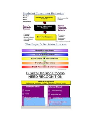 Consumer behavior involves how individuals search for, purchase, use, and dispose of products and services. There are two types of consumers - personal consumers who buy for individual use, and organizational consumers who buy for business use. Marketers have shifted their focus over time from the production concept of making what they can to the marketing concept of determining customer needs. The marketing mix of product, price, place, and promotion aims to create value and satisfaction for customers. Marketers also use digital technologies, customer research, segmentation, targeting, positioning, and relationships to better understand and serve consumers.