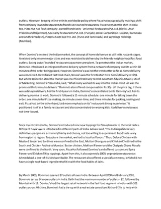 The document discusses various aspects of consumer behavior and the influence of marketing strategies, focusing on the entry and localization strategies of Domino's and Pizza Hut in the Indian market. It highlights the importance of consumer perceptions, opinion leaders, cognitive learning, and group influences on purchase decisions. Additionally, the document reviews factors influencing consumer behavior and the role of advertising in shaping buyer behaviors.