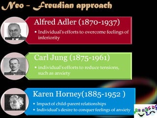 2. Sigmund Freud believed personality is made up of the id, ego, and superego. The id represents instincts, the superego aims for morality, and the ego balances the two.