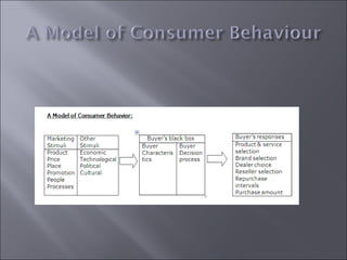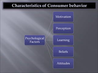 The document discusses various topics related to consumer behavior, including key concepts like motivation, perception, and the consumer decision-making process. It describes factors that influence consumer behavior such as culture, social class, and the stages of adopting new products. Various consumer behavior theories are also summarized, including those proposed by Freud, Maslow and others relating to psychological motivations and needs.