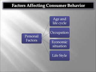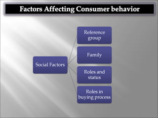 Consumer behavior involves the processes individuals use in evaluating, acquiring, and using services and products, influenced by cultural, social, and personal factors. Key determinants include family roles, social class, lifestyle, motivation, and perception, which shape how consumers make purchasing decisions. The evaluation of services is notably distinct from goods, with consumers often perceiving greater risk and engaging more in post-purchase evaluations.