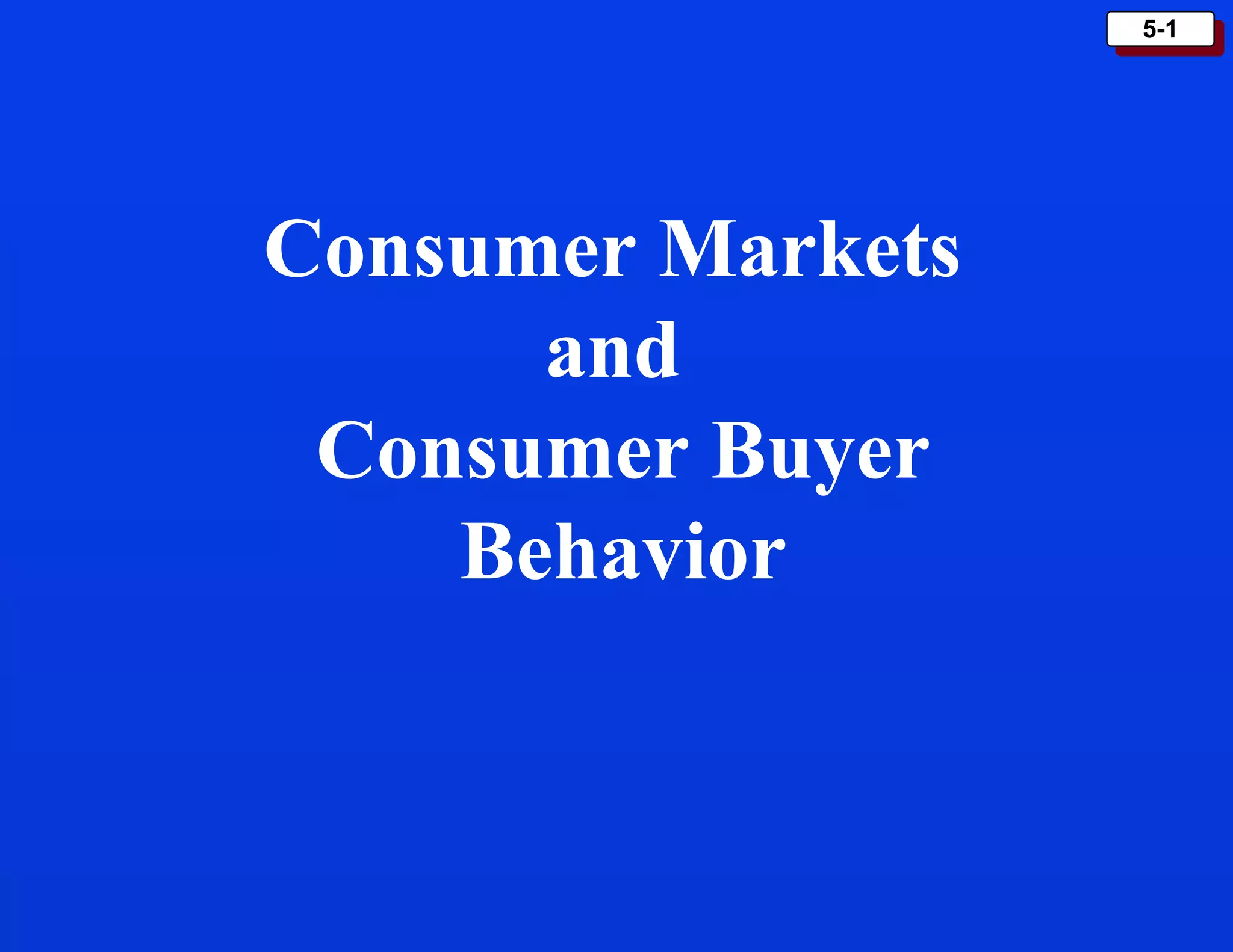 The document discusses consumer buying behavior and the factors that influence consumer purchase decisions. It outlines a simple model of consumer behavior involving marketing stimuli, the buyer's black box of characteristics and decision making processes, and the buyer's response. It then discusses the psychological, social, cultural, and personal characteristics affecting consumer behavior and lists the stages in the buyer decision process.