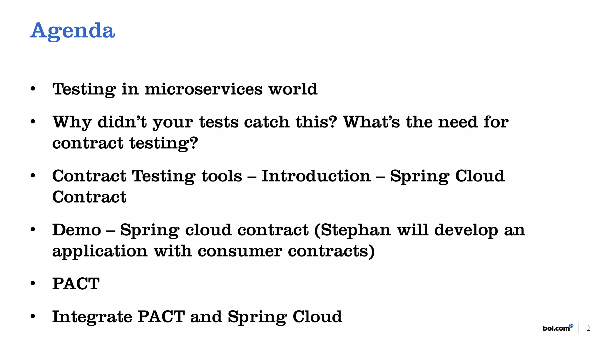 The document discusses the integration testing of services in a consumer-provider architecture, emphasizing the use of mocks and stubs for simulating external dependencies. It highlights the development of contracts using Spring Cloud Contract to define API behavior and enable independent work among multiple teams such as the front-end and API teams. The goal is to automate verification and maintain synchronization between the components of the webshop checkout project.