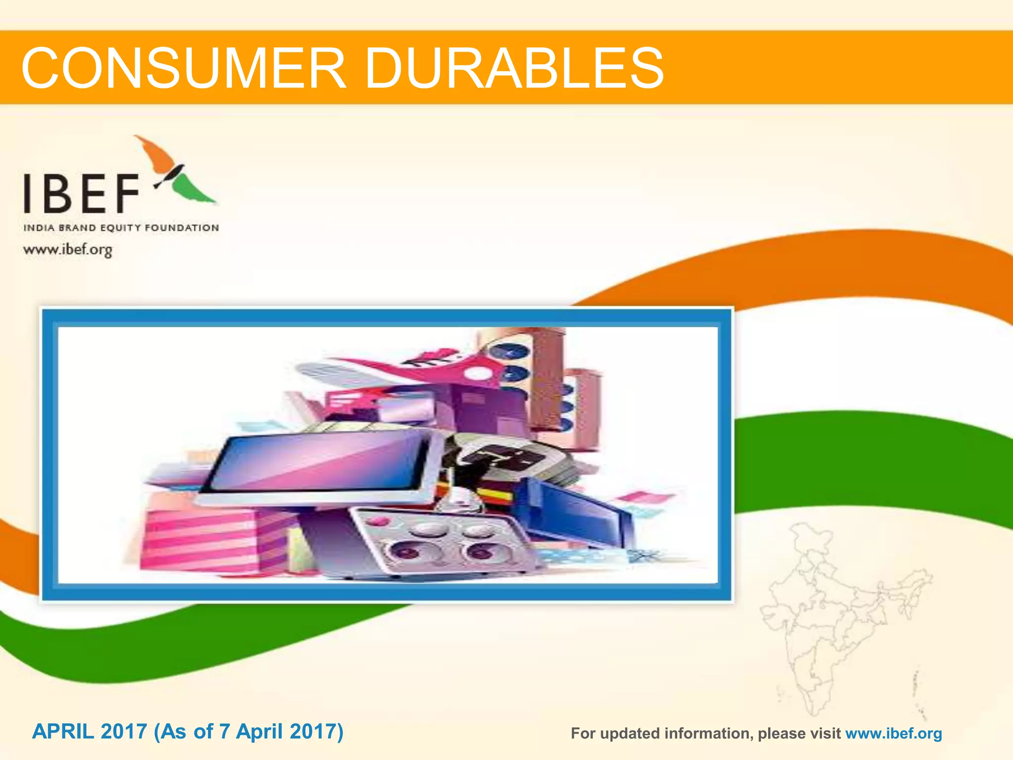 - The Indian consumer durables market is estimated to reach $12.5 billion in 2016 and $20.6 billion by 2020, growing at a CAGR of 13%.