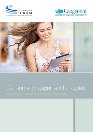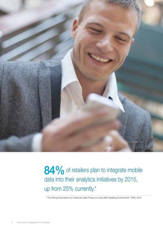 John controls when and how he interacts with retailers on his mobile device through a standardized "shop mode" switch, which was developed as part of a set of "Consumer Engagement Principles" or guidelines established by the consumer goods and retail industry. The principles were created in response to growing consumer concerns over digital data privacy and a lack of control over how companies collect and use personal information. They aim to build trust with consumers by ensuring mutual value for consumers, businesses, and society through responsible data practices and a balanced exchange of value.