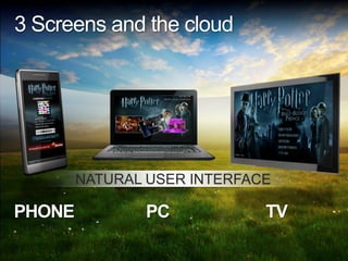 2) It outlines the evolution of media consumption from the pre-PC era to today's connected consumer era, where people are informed and can access personalized content anywhere, anytime across multiple devices.