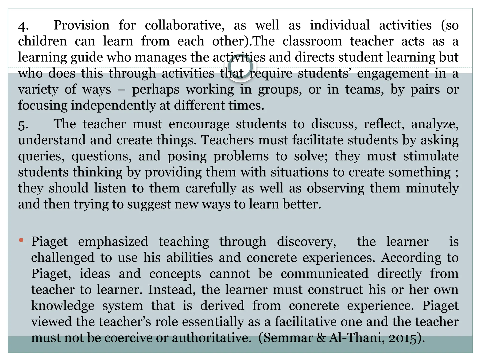 viewed the teacher’s role essentially as a facilitative one and the teacher