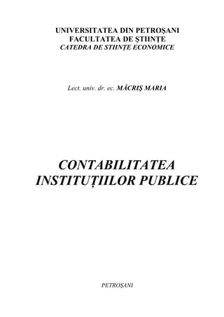 Lucrarea "Contabilitatea instituțiilor publice" oferă o analiză detaliată a principiilor și normelor contabile aplicabile unităților din sectorul public, fiind utilă pentru studenți și profesioniști din domeniu. Autoarea, lect. univ. dr. ec. Maria Măcriș, abordează complexitatea situațiilor financiare, sistematică a contabilității și particularitățile instituțiilor publice, toate acestea fiind susținute de legislația relevantă. De asemenea, lucrarea servește ca un ghid pentru îmbunătățirea managementului financiar-contabil în instituțiile publice, având în vedere și feedback-ul cititorilor pentru ediții viitoare.