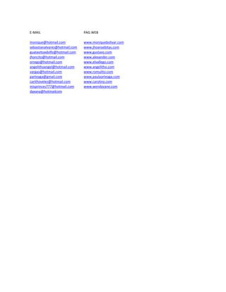 The document contains a contact list with 11 entries, each including names, last names, phone numbers, ages, and cell phone numbers. It also includes email addresses and personal web pages for each contact.