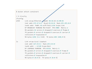 On: https://docs.docker.com/engine/userguide/networking/dockernetworks/ http://www.container42.com/2015/10/30/docker-networking-reborn/ http://www.slideshare.net/neependra/docker-networking-libnetwork-lakshman-kumar https://blog.docker.com/2015/04/docker-networking-takes-a-step-in-the-right-direction-2/ http://blog.docker.com/2015/11/docker-multi-host-networking-ga/ http://blog.scottlowe.org/2015/06/22/docker-networking/