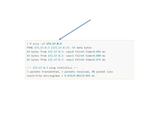 בה מבודדת סביבה הקונטיינרים של הרשת הגדרות. (Linux network namespaceלמשל) •Endpoint–רשת ממשק •Network–קבוצתEndpointsאחד לתקשר היכולים השני עם(Linux Bridge or Vlan) •באותו הקונטיינרים כלNetworkלתקשר יכולים. •מספר להכיל יכול קונטיינרEndpoints •מגדיריםEndpointל-Network Sandbox.