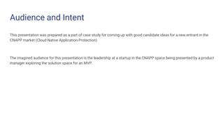 This presentation discusses the challenges and strategies for securing container workloads in the context of cloud-native application protection (CNAPP). It highlights the rapid evolution and ephemeral nature of cloud resources, the difficulties in achieving visibility and threat detection, and the significant staffing shortages in the security sector. Additionally, it outlines proposed solutions, including real-time drift detection and automation, while emphasizing the growth potential and market dynamics within the CNAPP space.